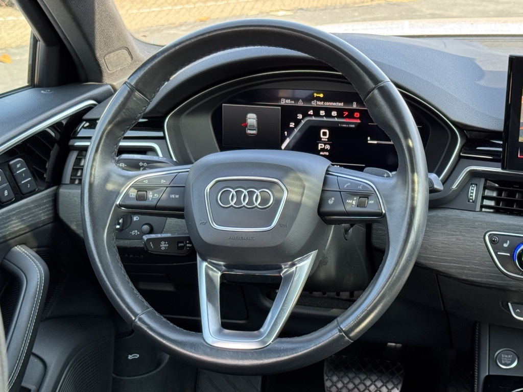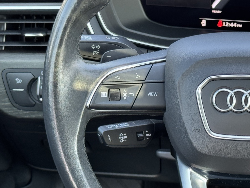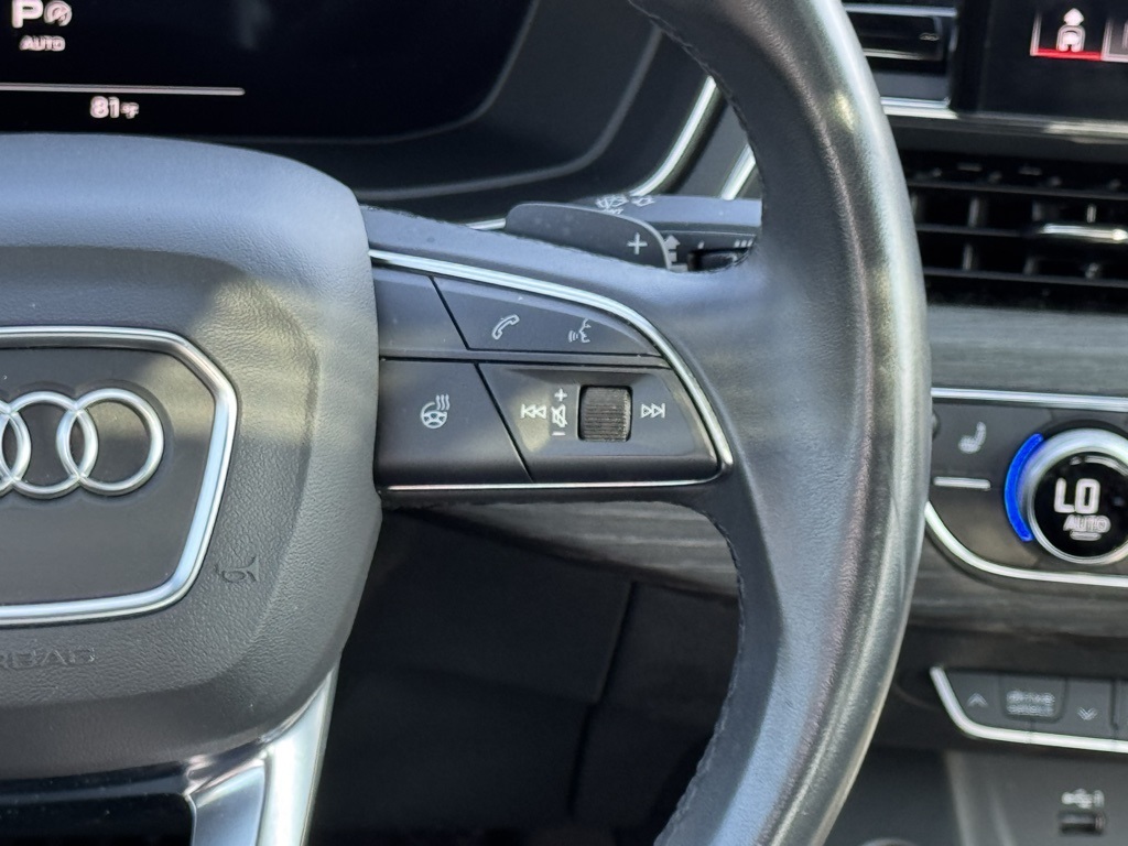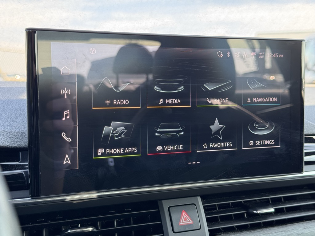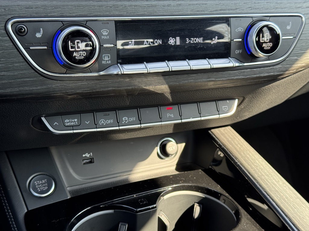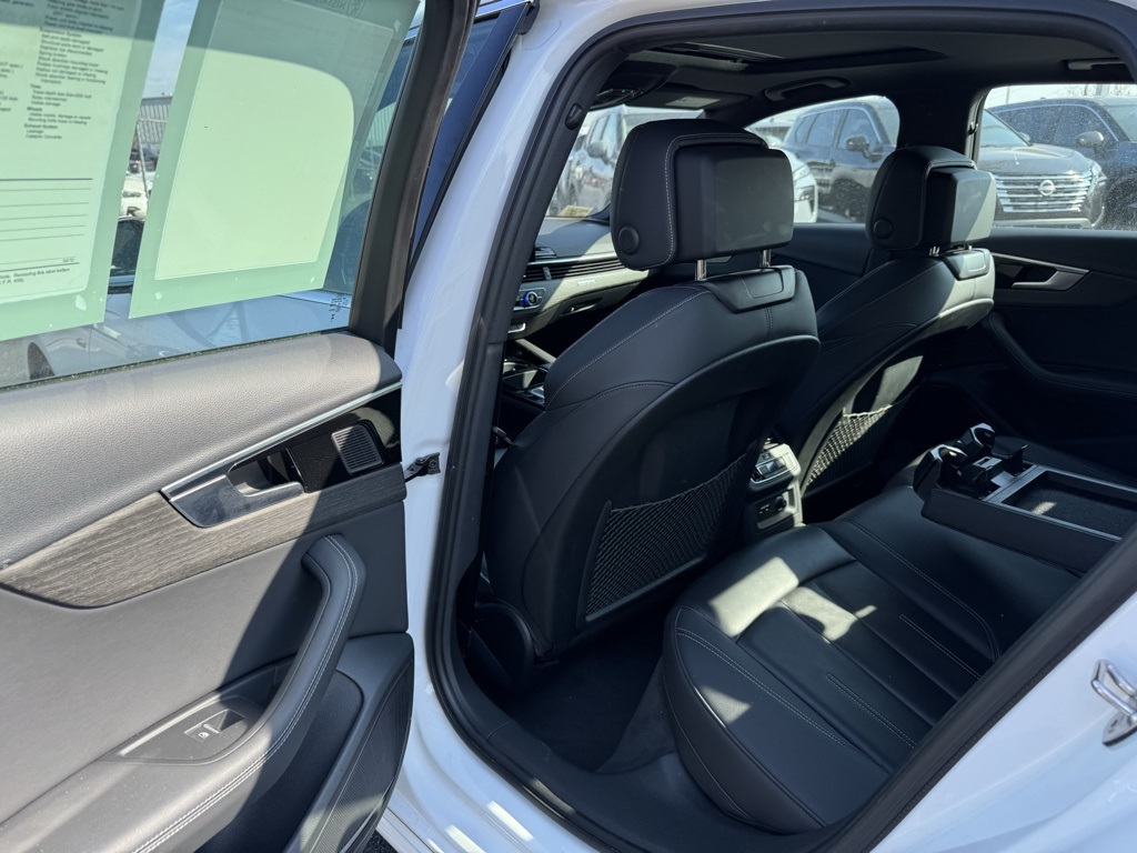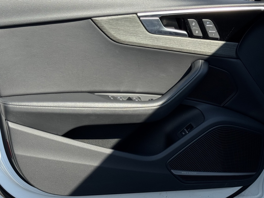 7-Speed Automatic S tronic, quattro, Black Leather, 10 Speakers, 4-Wheel Disc Brakes, ABS brakes, Air Conditioning, Alloy wheels, AM/FM radio, Anti-whiplash front head restraints, Audi smartphone interface (Apple CarPlay/Android Auto), Auto High-beam Headlights, Auto-dimming Rear-View mirror, Automatic temperature control, Brake assist, Bumpers: body-color, Compass, Delay-off headlights, Driver door bin, Driver vanity mirror, Dual front impact airbags, Dual front side impact airbags, Electronic Stability Control, Emergency communication system: Audi connect CARE, Exterior Parking Camera Rear, Four wheel independent suspension, Front anti-roll bar, Front Bucket Seats, Front Center Armrest, Front dual zone A/C, Front fog lights, Front reading lights, Garage door transmitter: HomeLink, Genuine wood dashboard insert, Genuine wood door panel insert, Heated door mirrors, Heated front seats, Heated Front Sport Bucket Seats, Illuminated entry, Knee airbag, Leather Seating Surfaces, Leather Shift Knob, Leather steering wheel, Low tire pressure warning, Occupant sensing airbag, Outside temperature display, Overhead airbag, Overhead console, Panic alarm, Passenger door bin, Passenger vanity mirror, Power door mirrors, Power driver seat, Power moonroof, Power passenger seat, Power steering, Power windows, Radio data system, Radio: Audi Sound System, Rain sensing wipers, Rear air conditioning, Rear anti-roll bar, Rear reading lights, Rear seat center armrest, Rear window defroster, Remote keyless entry, Speed control, Speed-sensing steering, Speed-Sensitive Wipers, Split folding rear seat, Steering wheel mounted audio controls, Tachometer, Telescoping steering wheel, Tilt steering wheel, Traction control, Trip computer, Turn signal indicator mirrors, Variably intermittent wipers, and Wheels: 18" 5-Double-Spoke Design.
