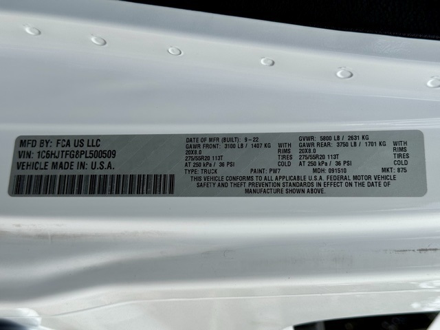 Certification Program Details: This Vehicle qualifies for Complimentary 7 year 250,000 Mile Limited Power Train Warranty. Huge Value. Vehicle age max 8yrs / under 85k miles. See Dealer for Details. High Altitude Package, LED Lighting Group (Daytime Running Lamps LED Accents, Front LED Fog Lamps, LED Park Turn Lamps, LED Premium Reflector Headlamps, and LED Taillamps), Quick Order Package 24N High Altitude (ABS 4-Wheel HD Disc Brakes w/CI Knuckle, Body Color 3-Piece Hard Top, Body Color Front Bumper, Body Color Grille w/Gloss Black Rings, Body Color Rear Bumper w/Step Pads, Body-Color Door & Tailgate Handles, Caramel Interior Accents, Dana M210 Wide Front Axle, Dana M220 Wide Rear Axle, Exterior Mirrors w/Supplemental Signals, Freedom Panel Storage Bag, Full Body Color Fender Flares, Full Length Floor Console Premium Armrest, Gloss Black Limited Badge, Gray/Black Trail Rated Badge, Leather Wrapped Park Brake Handle, Leather Wrapped Shift Knob, Nappa Leather Seats, No Soft Top, Premium Dark Exterior Accents, Rear Armrest w/Cupholder Seat, Rear Sliding Window, Rear Window Defroster, Side Steps, Sport Front Shock Absorbers, Sport Rear Shock Absorbers, Sport Suspension, Wheels: 20" x 8" Gloss Black Aluminum, and Wrapped I/P Bezel w/Caramel Stitch), Safety Group (Blind Spot & Cross Path Detection and ParkSense Rear Park Assist System), Trailer Tow Package (240 Amp Alternator, Class IV Receiver Hitch, Heavy-Duty Engine Cooling, and Trailer Hitch Zoom), 3.73 Rear Axle Ratio, 4-Wheel Disc Brakes, 9 Speakers, ABS brakes, Air Conditioning, Alloy wheels, AM/FM radio: SiriusXM, Anti-Spin Differential Rear Axle, Apple CarPlay/Android Auto, Auto-dimming Rear-View mirror, Automatic temperature control, Brake assist, Compass, Delay-off headlights, Driver door bin, Driver vanity mirror, Dual front impact airbags, Dual front side impact airbags, Electronic Stability Control, Emergency communication system, Front anti-roll bar, Front Bucket Seats, Front Center Armrest w/Storage, Front dual zone A/C, Front fog lights, Front reading lights, Fully automatic headlights, Garage door transmitter, Heated door mirrors, Illuminated entry, Integrated roll-over protection, Low tire pressure warning, MOPAR All-Weather Slush Mats, MOPAR Grab Handle Kit, MOPAR Hardtop Headliner, MOPAR Spray In Bedliner, Navigation System, Normal Duty Plus Suspension (DISC), Occupant sensing airbag, Outside temperature display, Overland Cloth Bucket Seats (DISC), Panic alarm, ParkView Rear Back-Up Camera, Passenger door bin, Passenger vanity mirror, Power door mirrors, Power steering, Power windows, Radio data system, Radio: Uconnect 4C Nav w/8.4" Display, Rear anti-roll bar, Rear reading lights, Remote keyless entry, Security system, Selec-Speed Control, Speed control, Split folding rear seat, Steering wheel mounted audio controls, Tachometer, Telescoping steering wheel, Tilt steering wheel, Traction control, Trip computer, Variably intermittent wipers, Voltmeter, and Wheels: 18" x 7.5" Granite Crystal Aluminum (DISC)