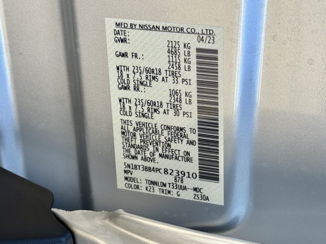 Certification Program Details: This Vehicle qualifies for Complimentary 7 year 250,000 Mile Limited Power Train Warranty. Huge Value. Vehicle age max 8yrs / under 85k miles. See Dealer for Details. 18" Aluminum Alloy Wheels, 4-Wheel Disc Brakes, 5.604 Axle Ratio, 6 Speakers, ABS brakes, Air Conditioning, Alloy wheels, AM/FM Radio, AM/FM radio: SiriusXM, Auto High-beam Headlights, Automatic temperature control, Black Splash Guards (Set of 4), Brake assist, Bumpers: body-color, Cloth Seat Trim, Delay-off headlights, Driver door bin, Driver vanity mirror, Dual front impact airbags, Dual front side impact airbags, Electronic Stability Control, Emergency communication system: NissanConnect Services, First Aid Kit, Floor Mats w/1-Piece Cargo Area Protector, Four wheel independent suspension, Front anti-roll bar, Front Bucket Seats, Front Center Armrest, Front dual zone A/C, Front reading lights, Fully automatic headlights, Heated door mirrors, Illuminated entry, Knee airbag, Low tire pressure warning, NissanConnect featuring Apple CarPlay and Android Auto, Occupant sensing airbag, Outside temperature display, Overhead airbag, Overhead console, Panic alarm, Passenger door bin, Passenger vanity mirror, Power door mirrors, Power driver seat, Power steering, Power windows, Radio data system, Rear anti-roll bar, Rear Parking Sensors, Rear seat center armrest, Rear side impact airbag, Rear window defroster, Rear window wiper, Remote keyless entry, Speed control, Speed-Sensitive Wipers, Split folding rear seat, Spoiler, Steering wheel mounted audio controls, Tachometer, Telescoping steering wheel, Tilt steering wheel, Traction control, Trip computer, and Variably intermittent wipers.