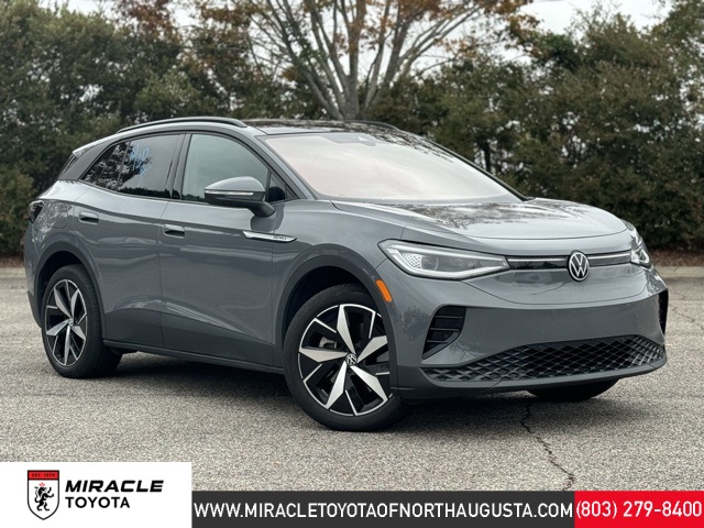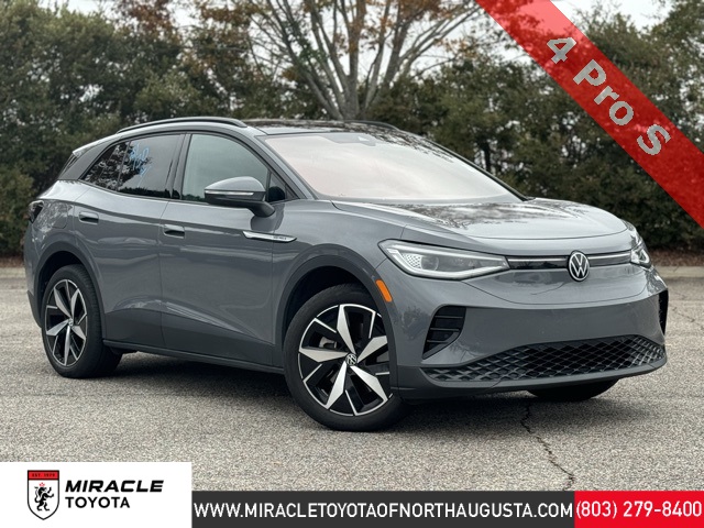 Wheel Locks included, All Windows Ceramic tint included, Cross Bars, All weather Floor Mats, Sunroof, Backup Camera, Push Button Start, Navigation, Apple Car Play/ Android Auto, Power Seats, Cruise Control, Clean Carfax, Alloy Wheels, ABS brakes, Active Cruise Control, Alloy wheels, Electronic Stability Control, Front dual zone A/C, Heated door mirrors, Heated Front Seats, Heated front seats, Illuminated entry, Low tire pressure warning, Navigation System, Power Liftgate, Remote keyless entry, Traction control. 104/93 City/Highway MPG Silver Mist Metallic 2023 Volkswagen ID.4 Pro S AWD This Vehicle qualifies for Complimentary 7 year 250,000 Mile Limited Power Train Warranty. Huge Value! Vehicle age max 7 yrs / under 100k miles. See Dealer for Details.
