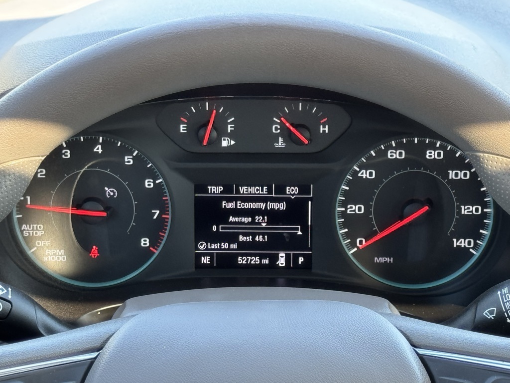 Preferred Equipment Group 1LT, Gray Cloth, 17" Aluminum Wheels, 4-Wheel Disc Brakes, 6 Speakers, 6-Speaker Audio System Feature, 6-Way Manual Front Passenger Seat Adjuster, 8-Way Power Driver Seat Adjuster, ABS brakes, Air Conditioning, Alloy wheels, AM/FM radio: SiriusXM, Auto High-beam Headlights, Automatic temperature control, Brake assist, Bumpers: body-color, Compass, Delay-off headlights, Deleted 3 Years of Remote Access, Driver door bin, Driver vanity mirror, Dual front impact airbags, Dual front side impact airbags, Electronic Stability Control, Emergency communication system: OnStar and Chevrolet connected services capable, Exterior Parking Camera Rear, Four wheel independent suspension, Front anti-roll bar, Front Bucket Seats, Front Center Armrest, Front dual zone A/C, Front reading lights, Fully automatic headlights, Heated door mirrors, Heated Driver & Front Passenger Seats, Heated front seats, Illuminated entry, Knee airbag, Low tire pressure warning, Occupant sensing airbag, Outside temperature display, Overhead airbag, Overhead console, Panic alarm, Passenger door bin, Passenger vanity mirror, Power door mirrors, Power Driver Lumbar Control Seat Adjuster, Power driver seat, Power steering, Power Tilt-Sliding Sunroof, Power windows, Premium audio system: Chevrolet Infotainment 3 Plus, Premium Cloth Seat Trim, Radio data system, Radio: Chevrolet Infotainment 3 System, Rear anti-roll bar, Rear reading lights, Rear seat center armrest, Rear side impact airbag, Rear window defroster, Remote keyless entry, Road Emergency Tool Kit, Security system, SiriusXM, Speed control, Split folding rear seat, Steering wheel mounted audio controls, Tachometer, Telescoping steering wheel, Tilt steering wheel, Traction control, Trip computer, Variably intermittent wipers, Voltmeter, and Wireless Apple CarPlay/Android Auto.