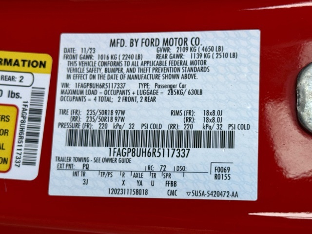 22/33 City/Highway MPG CARFAX One-Owner. Race Red 2024 Ford Mustang EcoBoost Premium RWD The Miracle Advantage: This Vehicle qualifies for Complimentary 7 YEAR 250,000 MILE LIMITED POWER TRAIN WARRANTY. HUGE VALUE!