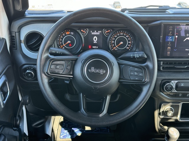 CARFAX One-Owner. Clean CARFAX. Miracle Toyota of North Augusta is pumped up to offer this outstanding 2024 Jeep Wrangler in Bright White Clearcoat This vehicle has passed our comprehensive inspection and comes with the following Quick Order Package 24B Sport, Smoker's Group (Cigar Lighter), 110 MPH Vehicle Max Speed Calibration, Apple CarPlay/Android Auto, Wheels: 17" x 7.5" Black Steel Styled, 4-Wheel Disc Brakes, 8 Speakers, ABS brakes, Air Conditioning, AM/FM radio, Aux Battery, Brake assist, Cloth Low-Back Bucket Seats, Compass, Delay-off headlights, Driver door bin, Driver vanity mirror, Dual front impact airbags, Dual front side impact airbags, Electronic Stability Control, Front anti-roll bar, Front Bucket Seats, Front Center Armrest w/Storage, Front fog lights, Front reading lights, Integrated roll-over protection, Low tire pressure warning, MOPAR Plastic Door Sill Guards, Non-Lock Fuel Cap w/o Discriminator, Normal Duty Suspension, Occupant sensing airbag, Outside temperature display, Overhead airbag, ParkView Rear Back-Up Camera, Passenger door bin, Passenger vanity mirror, Power steering, Radio data system, Radio: Uconnect 5 w/12.3" Display, Rear anti-roll bar, Rear reading lights, Speed control, Split folding rear seat, Steering wheel mounted audio controls, Stop-Start Dual Battery System, Tachometer, Telescoping steering wheel, Tilt steering wheel, Traction control, Trip computer, and Variably intermittent wipers;